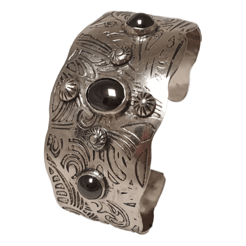 - Handcrafted Sterling silver Cuff Bangle with Haematite